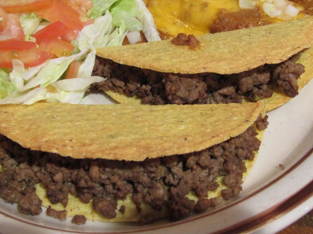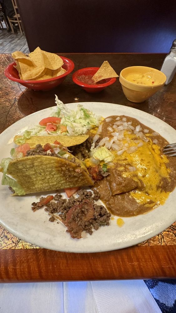 Beef Tacos, Cheese Enchiladas w/ Chili Sauce